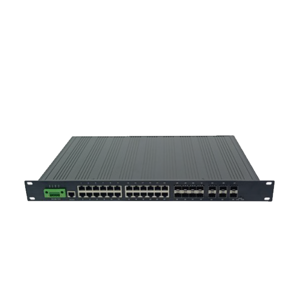 二层网管工业级(铝合金),24个千兆电口,8个千兆光口SFP, 6个万兆光口SFP+、支持环网+WEB/CLI管理+SNMP+VLAN