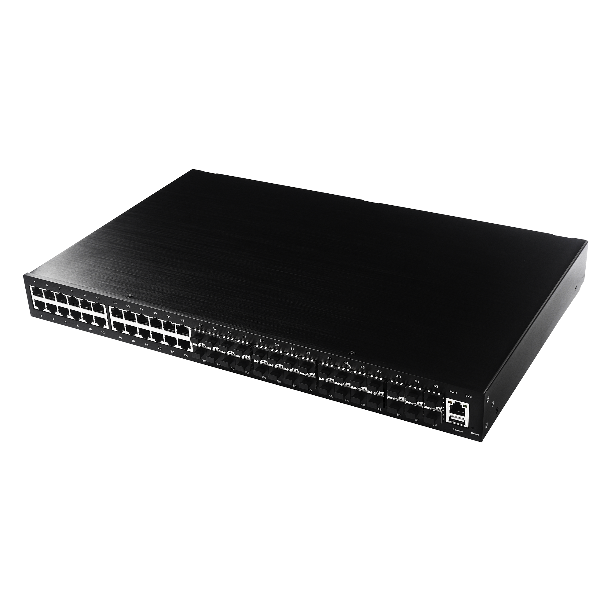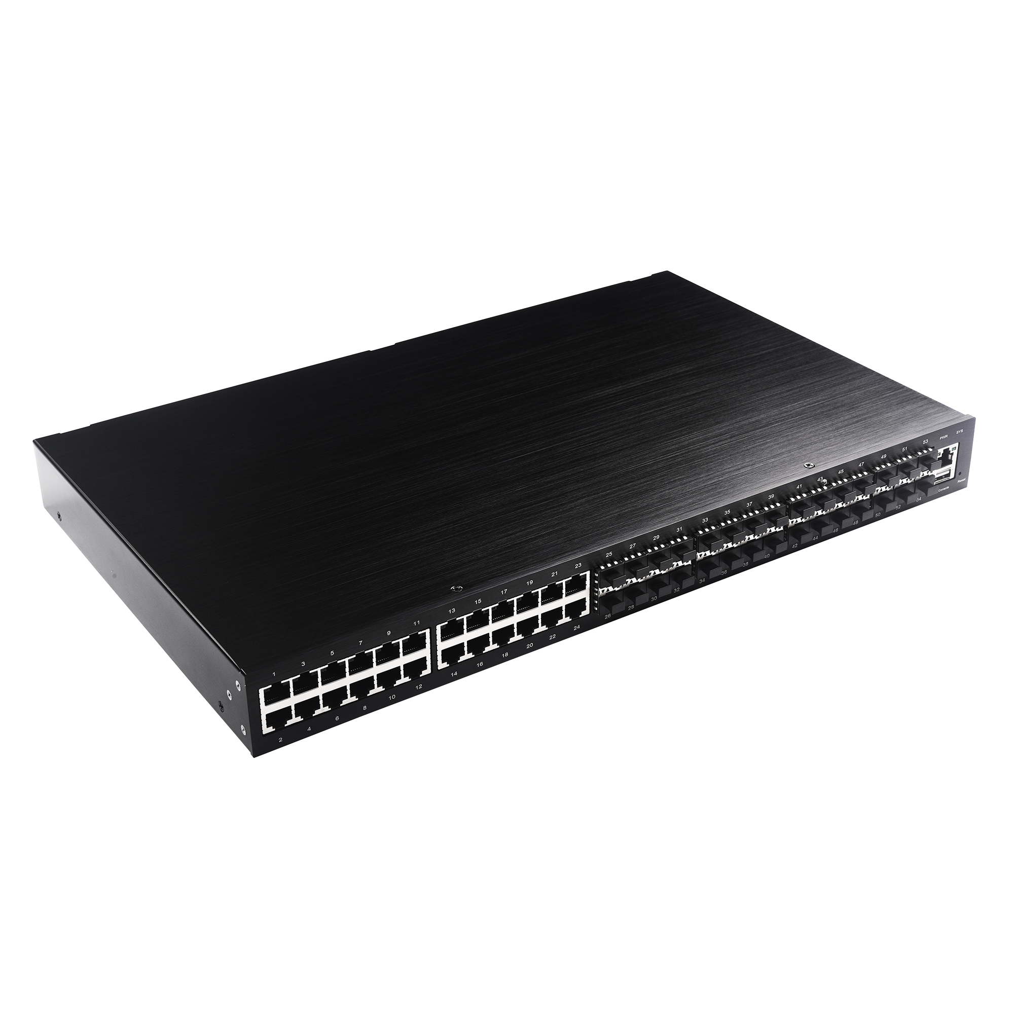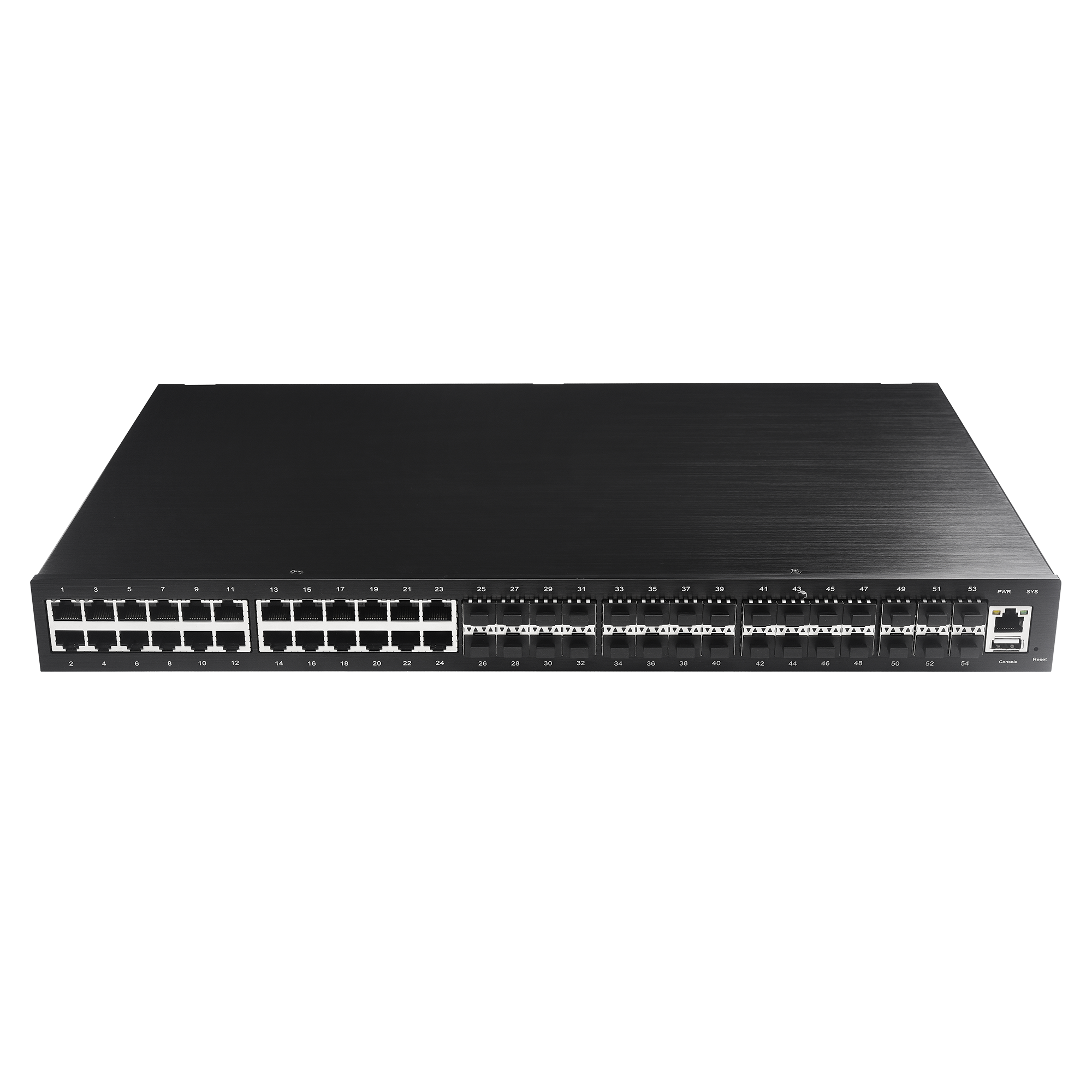 Three layer network management industrial grade (aluminum alloy), 24 Gigabit electrical ports, 24 Gigabit optical ports SFP, 6 10G optical ports SFP+, supporting ring network+WEB/CLI management+SNMP+VLAN, supporting static routing, RIP, OSPF, VRRP; Industrial grade rack mounted, input AC220V power supply port, IP40 protection level, wide temperature range (-40 ℃ -85 ℃), default SFP module not included. Multiple forms such as 48GB+60000MB optical can be selected;